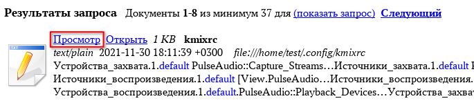 Чтобы открыть найденный файл связанной с ним программой, следует нажать Открыть в соответствующей строке.