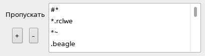 В поле Пропускать отображаются шаблоны имен файлов и каталогов, которые не будут включены в индекс.