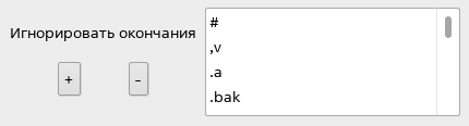 В поле Игнорировать окончания отображается список окончаний файлов, которые будут индексироваться только по имени.
