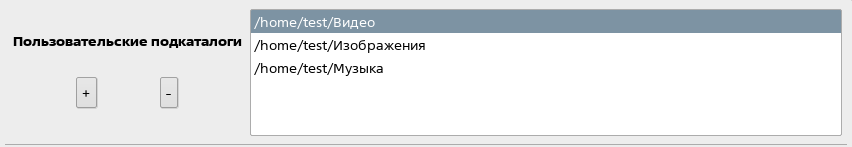 Для удаления каталога из списка следует выбрать каталог и нажать кнопку [-].