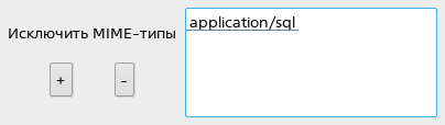 В поле Исключить MIME-типы отображается список MIME-типов, которые не будут включены в индекс.