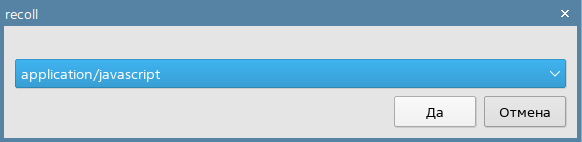 Для добавления MIME-типа в список следует нажать кнопку [+], в открывшемся окне выбрать нужный MIME-тип из выпадающего списка и нажать кнопку [Да].