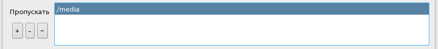 Список каталогов, входящих в выбранный, которые следует пропускать, отображается в поле Пропускать.
