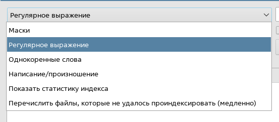 - Написание/произношение — поиск слов, фонетически схожих с введенным. Для корректной работы поиска необходима установленная программа Aspell;