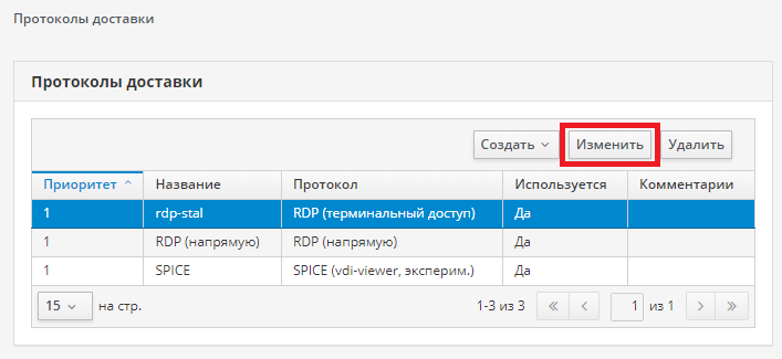 Протокол доставки – это поддерживаемый в Termidesk протокол удаленного доступа к РМ. Протоколы доставки обеспечивают подключение к ВРМ, а также к терминальным сессиям и приложениям, и могут выполнять доставку РМ как напрямую, так и через компонент «Шлюз».