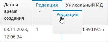 - порядок следования столбцов. Для изменения порядка следования нужно захватить левой кнопкой мыши заголовок столбца, и, не отпуская ее, перенести его в нужное расположение. Для возврата к исходному состоянию отображения следует воспользоваться экранной кнопкой [Сбросить порядок колонок], которая становится доступна только после изменения порядка следования столбцов и будет скрыта после сброса;