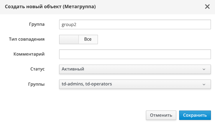 Окно добавления метагруппы домена аутентификации
