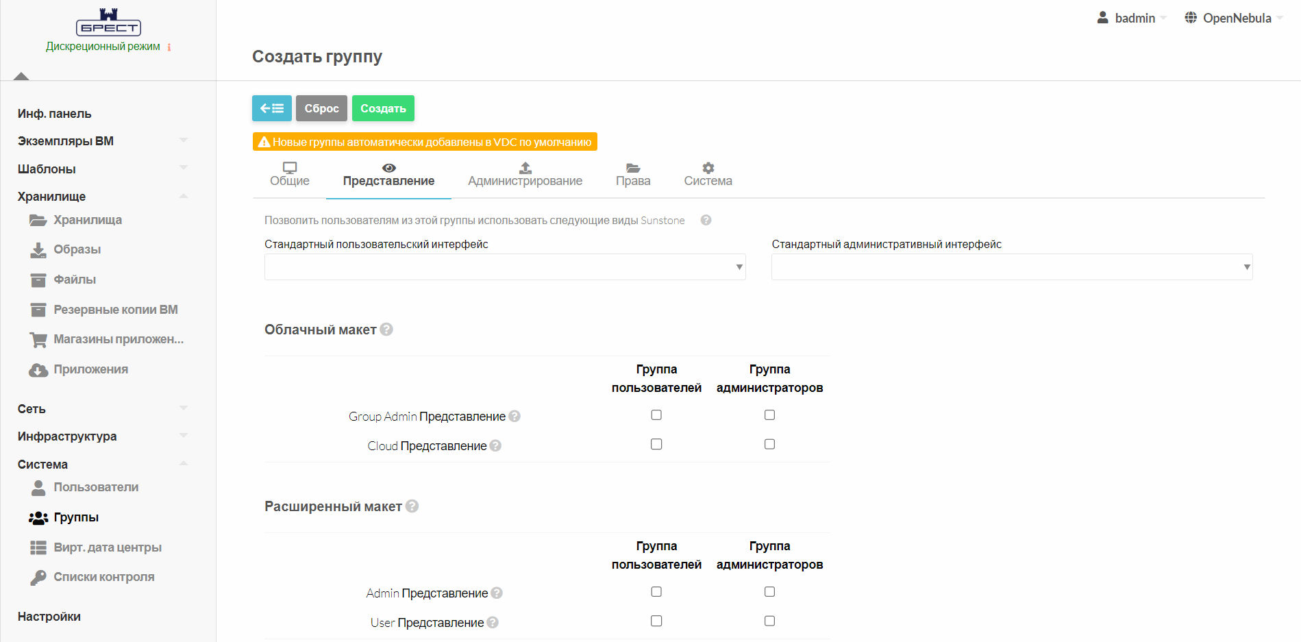 • в графическом интерфейсе ПК СВ Брест перейти «Система — Группы», затем нажать экранную кнопку [+].
