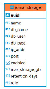 Назначение таблицы: хранение данных об объектах инфраструктуры «Хранилище журналов».