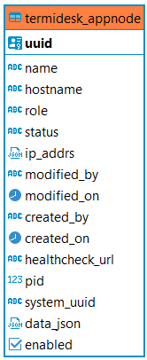 Назначение таблицы: хранение данных об объектах инфраструктуры Termidesk.