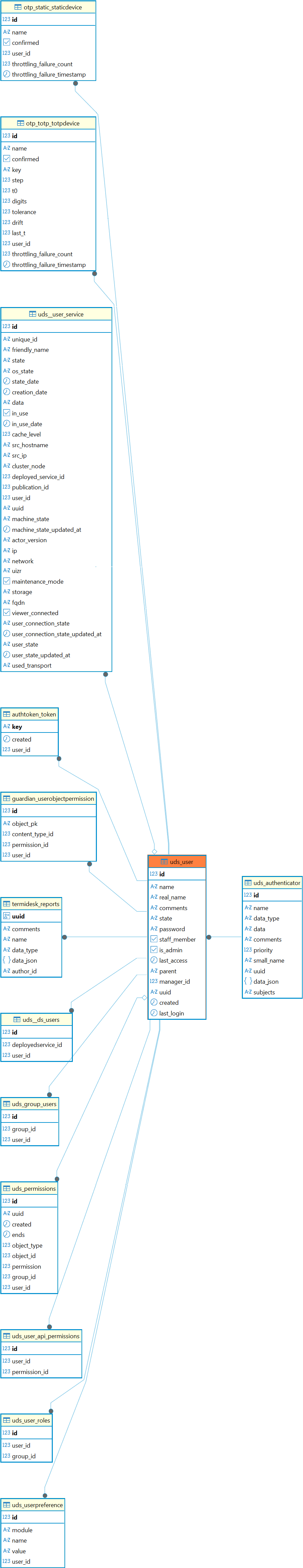 Назначение таблицы: хранение информации о пользователе с привязкой к домену аутентификации.
