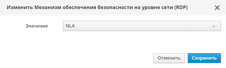 Окно «Изменить Механизм обеспечения безопасности на уровне сети (RDP)»