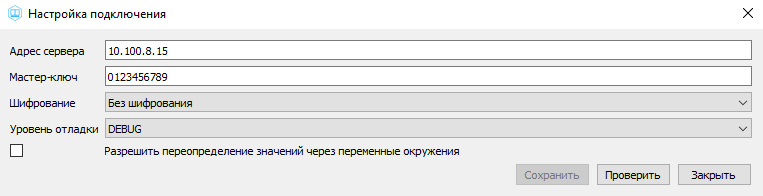 • «Проверка сертификата»: «Нет» — проверка подлинности сертификата при запросах к сессионному Агенту отключена;