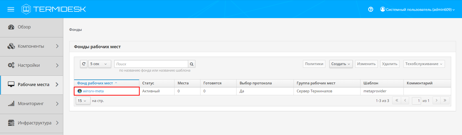 • «Фонд»: «winsrv-meta» — сервисный фонд для размещения РМ;