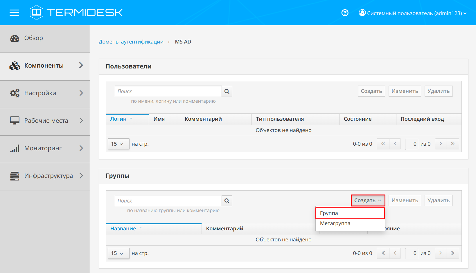 • метапоставщик и программный комплекс Termidesk не вводятся в домен;