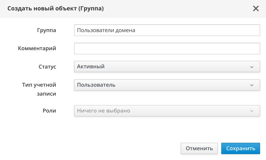 • «Логин»: «user1» — идентификатор субъекта в домене аутентификации (совпадает с идентификатором субъекта в службе каталогов);