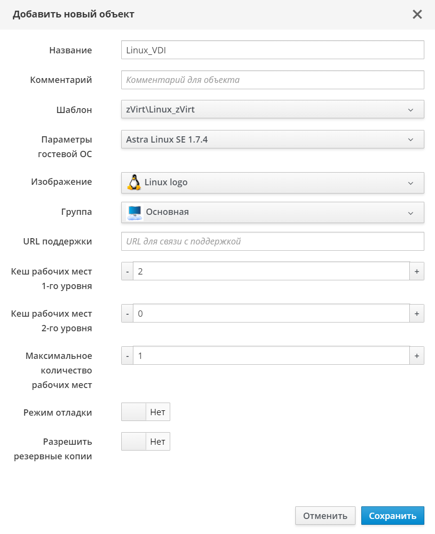 • «Название»: «Linux_VDI» — название фонда ВРМ;