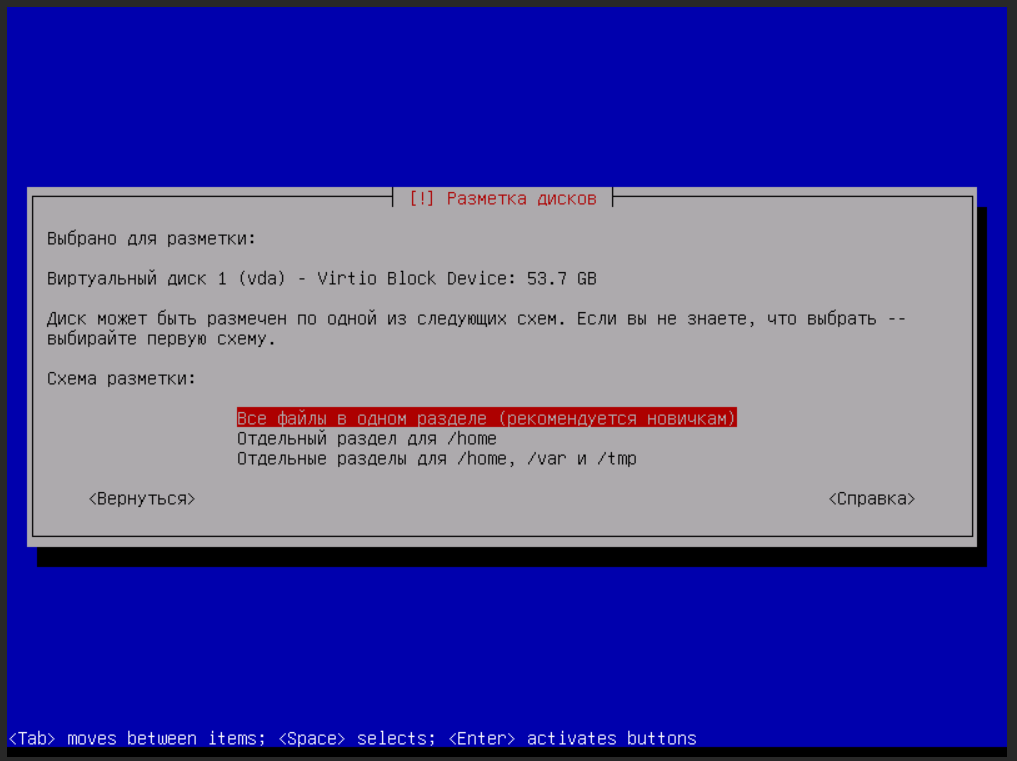 - Выберите схему разметки Все файлы в одном разделе.