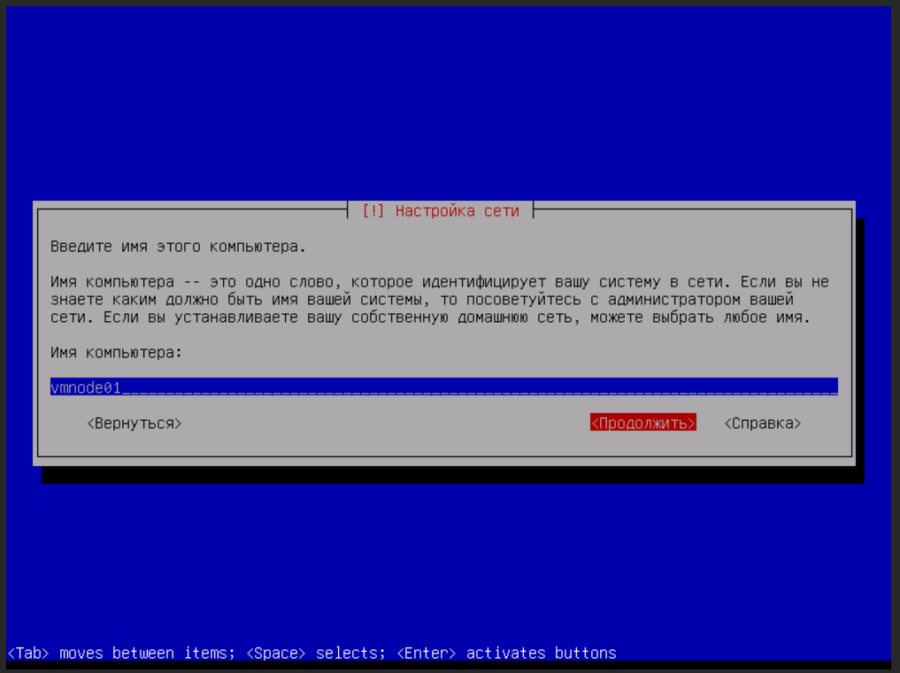 - Введите уникальное имя компьютера (hostname). Например, vmnode01.