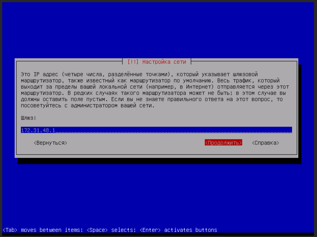 - Скрипт применит указанные настройки и запустит проверку связи со шлюзом с помощью утилиты ping. Если скрипт получил ответ от шлюза, значит сеть успешно настроена и скрипт завершит свою работу. Если ответ не был получен, скрипт выдаст запрос на повторную настройку.