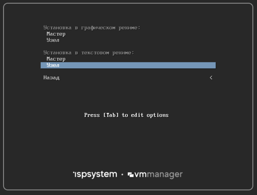 - для узла кластера — Установка в текстовом режиме → Узел.