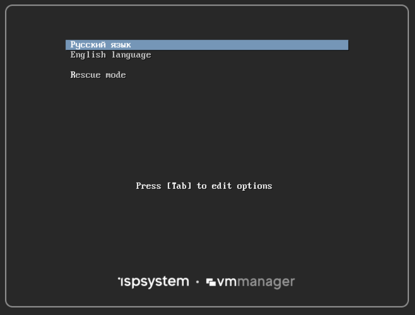 ОС установлена. Для аутентификации используйте имя пользователя vmmanager и пароль, указанный при установке.