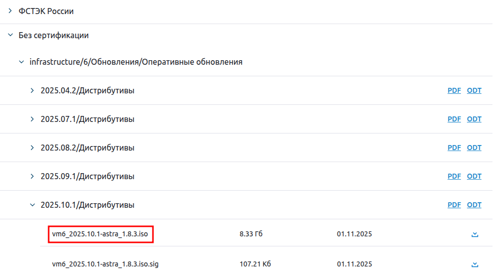 - astra.iso — Astra Linux Special Edition 1.7.4, 1.8.1, 1.8.3;