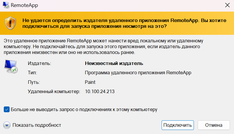 PNG-файл 6. Подтверждение подключения к удалённому рабочему столу.png 42 kB ADM Вадим Косовец 23.09.25 17:47