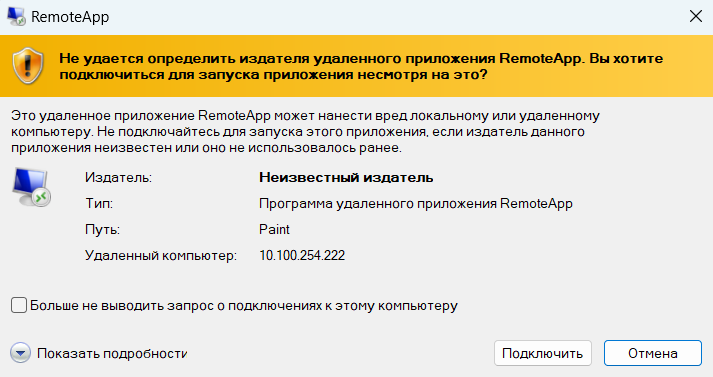 PNG-файл 6.1 Подтверждение подключения к удалённому рабочему столу.png 33 kB ADM Вадим Косовец 23.09.25 17:48
