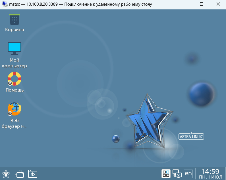 - в случае успешного подключения Клиент отобразит окно рабочего стола.