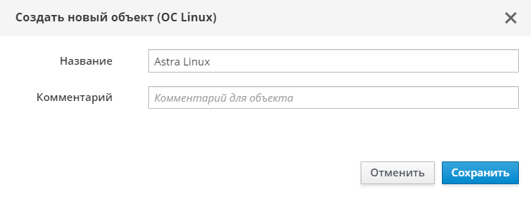 При этом откроется окно «Создать новый объект (ОС Linux)». В окне нужно заполнить поля «Название», «Комментарий» (при необходимости).