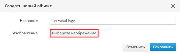 При этом откроется окно «Создать новый объект». В открывшемся окне следует ввести текстовое наименование изображения, нажать экранную кнопку [Выберите изображение] и указать расположение логотипа. После загрузки логотипа нажать экранную кнопку [Сохранить].