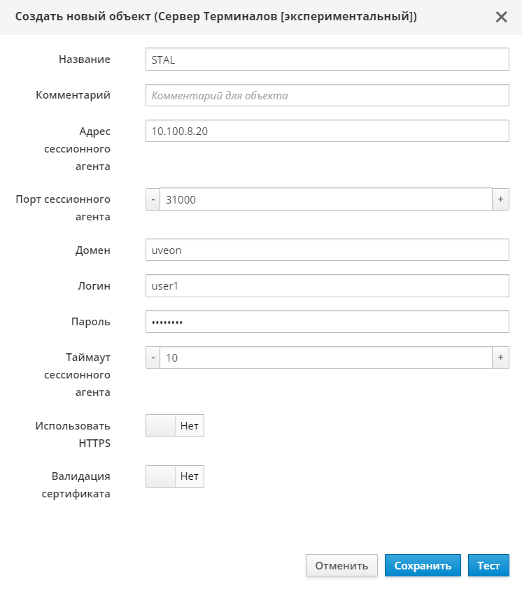 - «Использовать HTTPS»: «Нет» — использование протокола HTTPS для запросов к сессионному Агенту отключено;