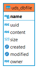 Справочный центр Termidesk Администратору База данных Termidesk Структура базы данных Таблицы Current: Таблица: uds_dbfile PDF Download PDF Download page Таблица: uds_dbfile. Current page All pages Таблица: uds_dbfile Назначение таблицы: хранение представления файлов. Перечень полей таблицы uds_dbfileПолеОписаниеuuidУникальный идентификаторnameНаименование файла базы данныхcontentСодержимое файла базы данныхsizeРазмер файла базы данныхcreatedДата созданияmodifiedДата измененияownerВладелец файла базы данныхДиаграмма таблицы приведена на рисунке.Диаграмма таблицы uds_dbfile ×