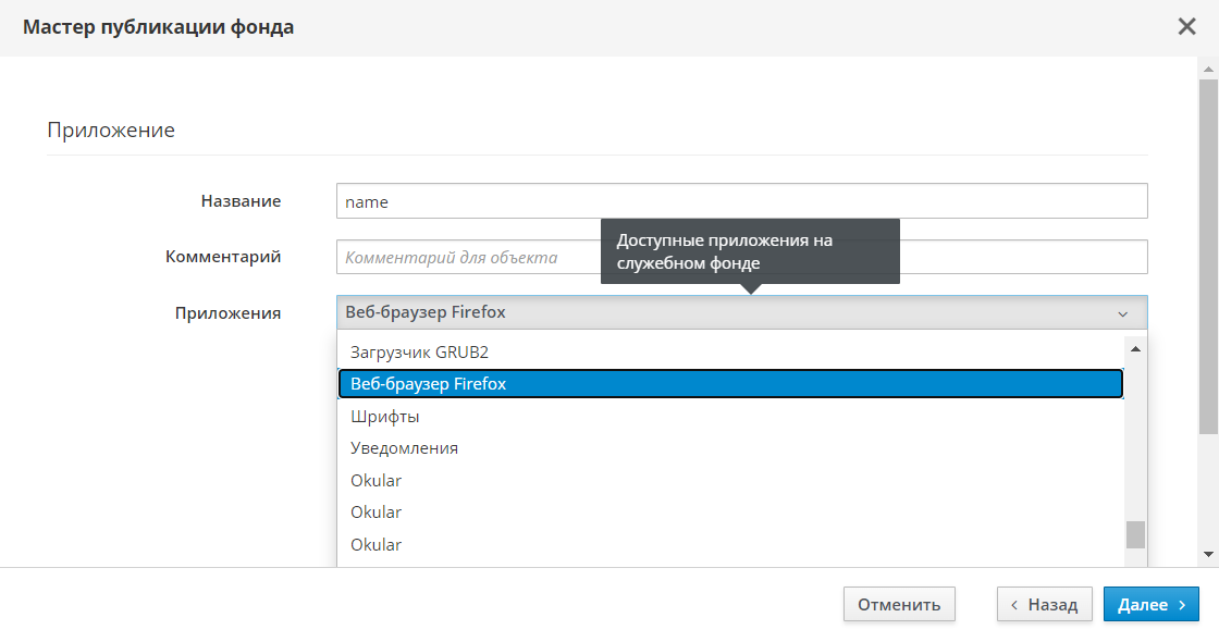 Затем выбрать пользователя домена аутентификации. Шаг опционален: параметры можно добавить после завершения работы мастера публикации, в созданном фонде на странице «Рабочие места - Фонды».