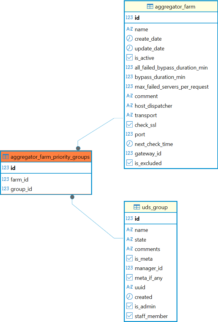 Назначение таблицы: хранение данных о связи групп и ферм, к которым они относятся.