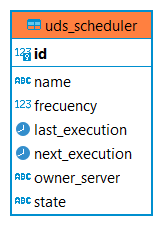 Справочный центр Termidesk Администратору База данных Termidesk Структура базы данных Таблицы Current: Таблица: uds_scheduler PDF Download PDF Download page Таблица: uds_scheduler. Current page All pages Таблица: uds_scheduler Назначение таблицы: хранение данных о запланированных задачах termidesk-taskman, которые хранятся в базе данных постоянно. Перечень полей таблицы uds_schedulerПолеОписаниеidИдентификаторnameНаименование заданияfrecuencyЧастота повторенияlast_executionДата и время последнего запуска заданияnext_executionДата и время следующего запуска заданияowner_serverВладелец заданияstateСостояниеЗначения, которые может принимать параметр «state»СостояниеОписаниеWЗадание выполняетсяXЗадание ожидает выполненияДиаграмма таблицы приведена на рисунке.Диаграмма таблицы uds_scheduler ×