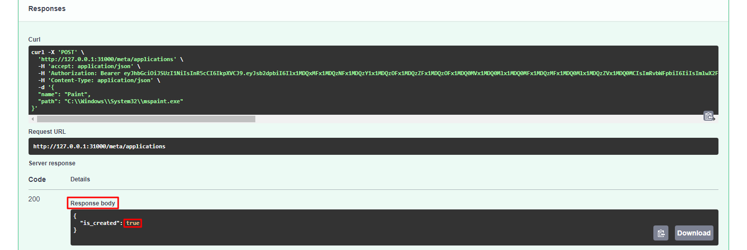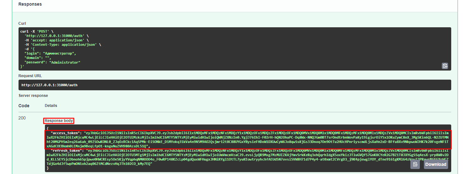 Успешное выполнение запроса сгенерирует токен доступа в поле «Response body». В строке access_token нужно скопировать значение токена, исключая кавычки.