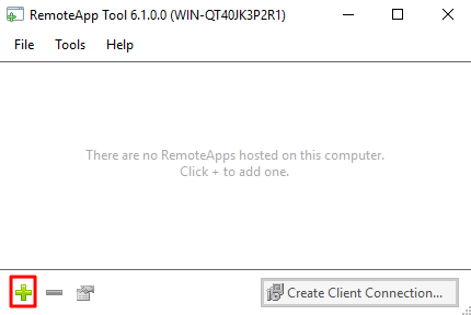 - в случае успешного подключения Клиент отобразит окно с опубликованным приложением.