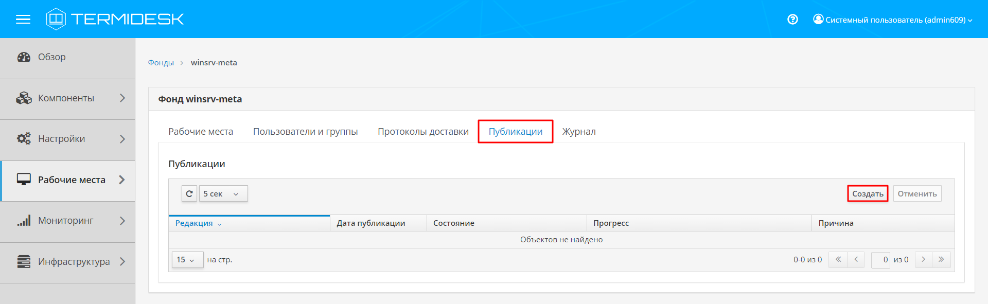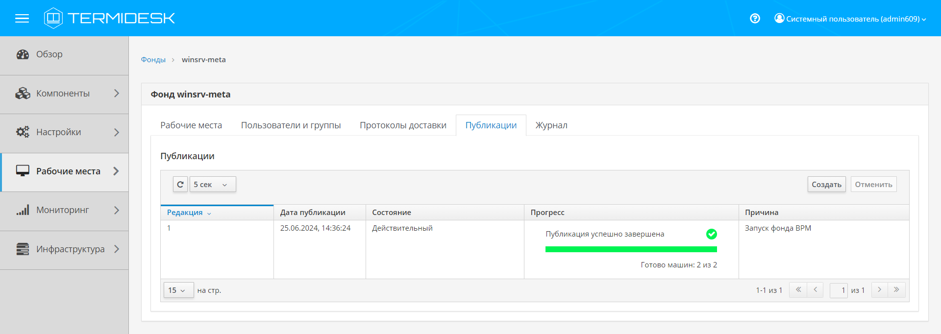 - «Фонд»: «winsrv-meta» — сервисный фонд для размещения РМ;