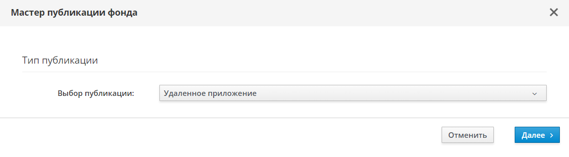 При этом откроется окно «Мастер публикации фонда». В полях формы «Тип публикации» следует выбрать соответствующую службу для публикации и нажать экранную кнопку [Далее].