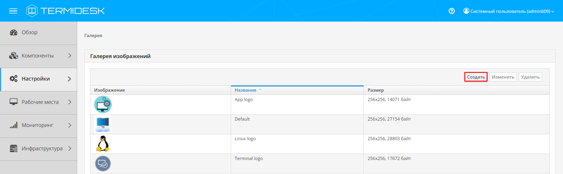 Логотипы используются для визуальной идентификации объектов в Termidesk.