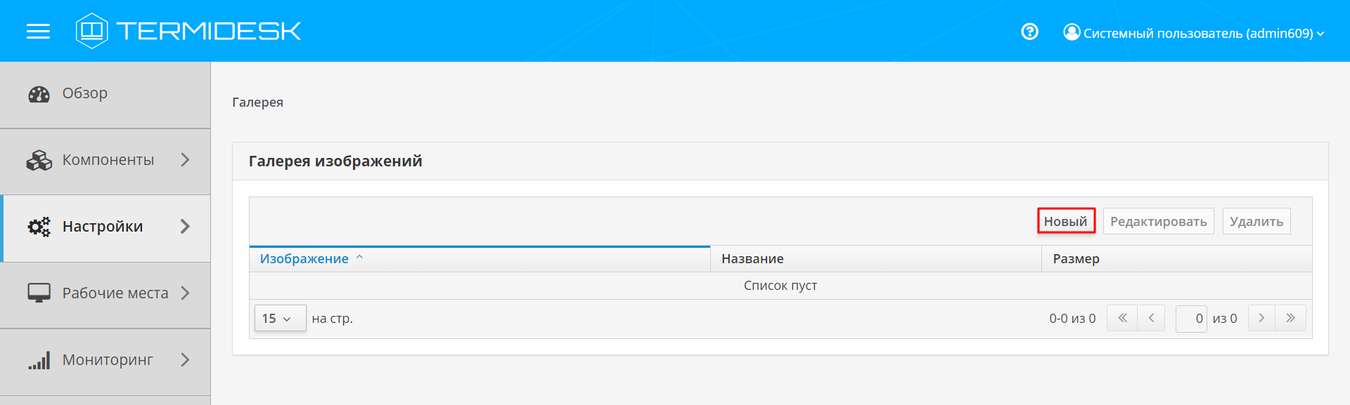 Для добавления логотипа следует перейти «Настройки — Галерея» и нажать экранную кнопку [Новый].
