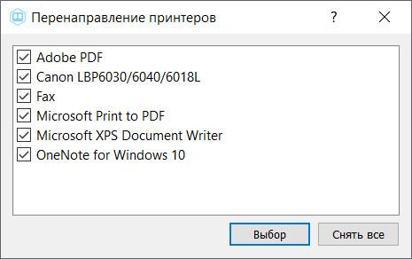 выбрать устройство для перенаправления, отметив его галочкой. Список принтеров будет отличаться в зависимости от настроек и типа ОС, с которой происходит подключение;