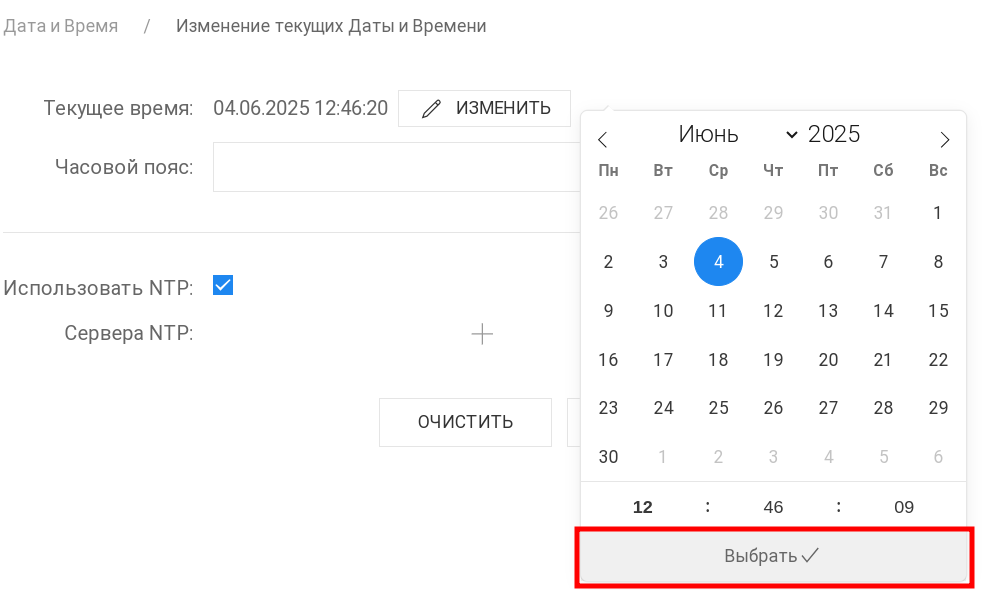 Для сброса значений используется экранная кнопка [Очистить], восстанавливающая значения, которые были актуальны в момент перехода на страницу, если не была активирована экранная кнопка [Применить].