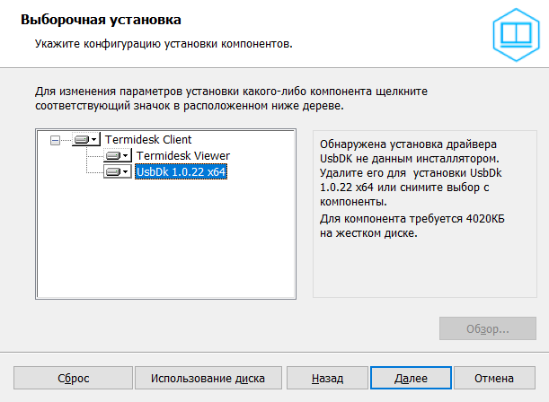 Путь установки должен содержать только символы латиницы. Установка в каталог с кириллическими символами может привести к ошибкам при подключении к РМ по протоколу RDP.