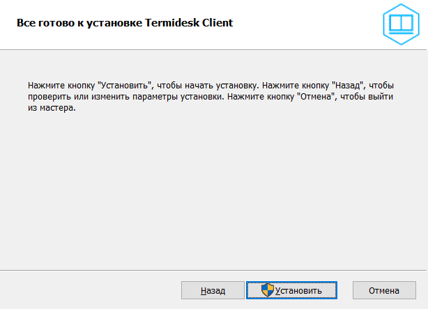 В зависимости от версии процесс установки может отличаться. Для ознакомления с особенностями установки рекомендуется обратиться к подразделу Установка Клиента и ПО Termidesk Viewer в ОС Microsoft Windows.