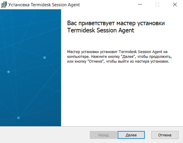 завершить работу мастера после установки сессионного Агента, нажав кнопку [Готово];