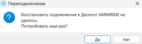 если восстановление соединения не удалось выполнить в течение всех запланированных попыток, то будет отображено окно с запросом на повторную попытку. При этом: