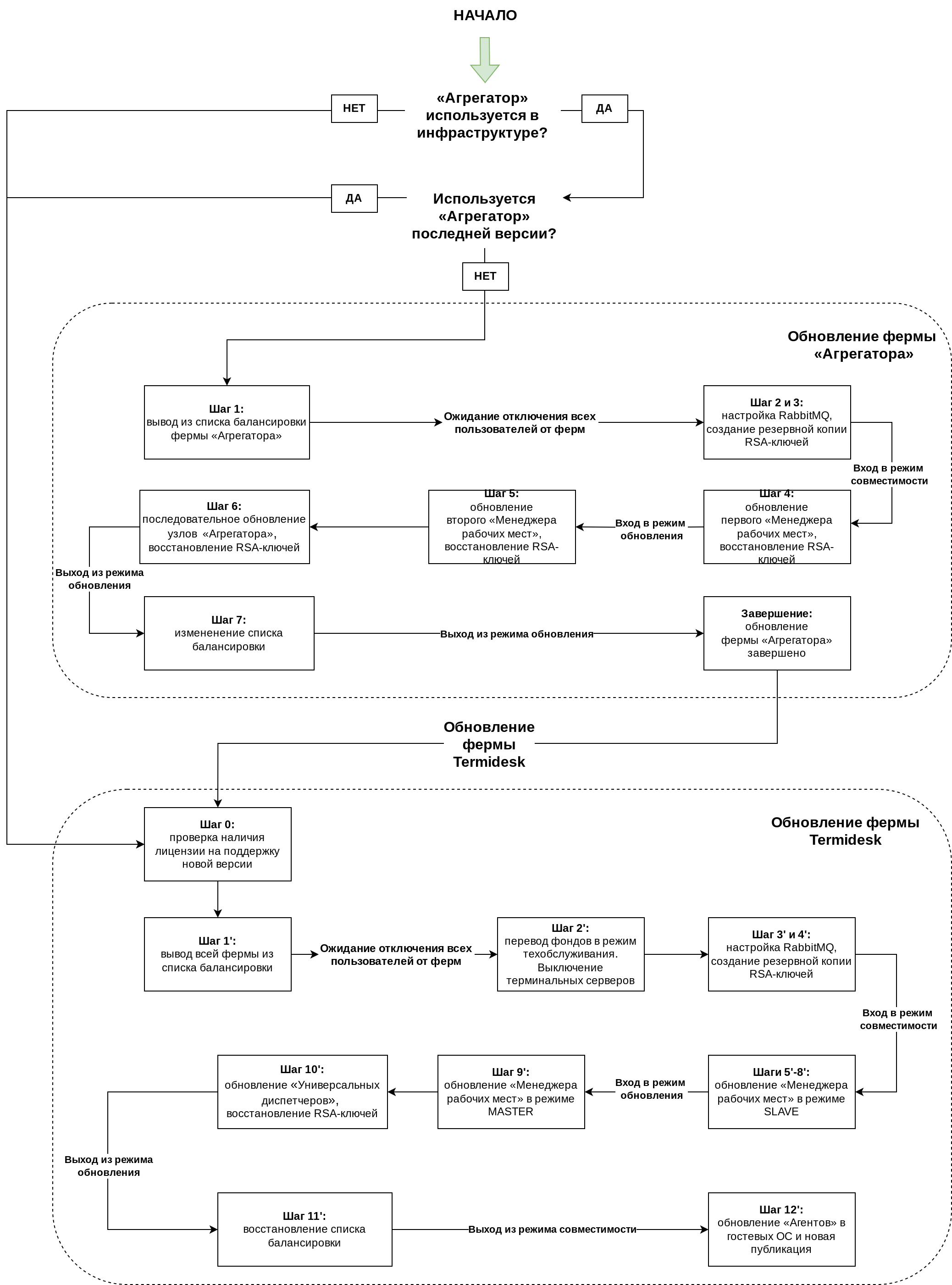 Описание применимо к ферме «Агрегатора», установленной в распределенной конфигурации. Общая последовательность действий приведена на рисунке.